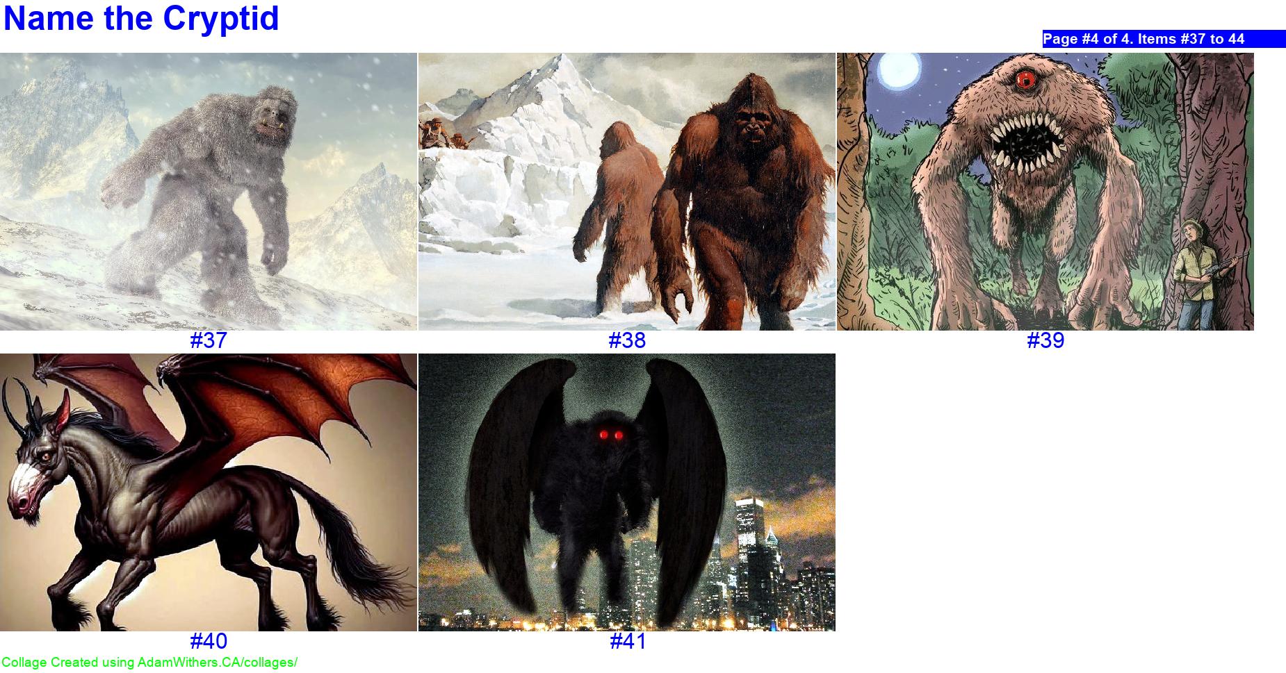 See Answer HTML Collage!! Debug Collage ReCreate "guessCryptids" Thumb ImageA: guessCryptids