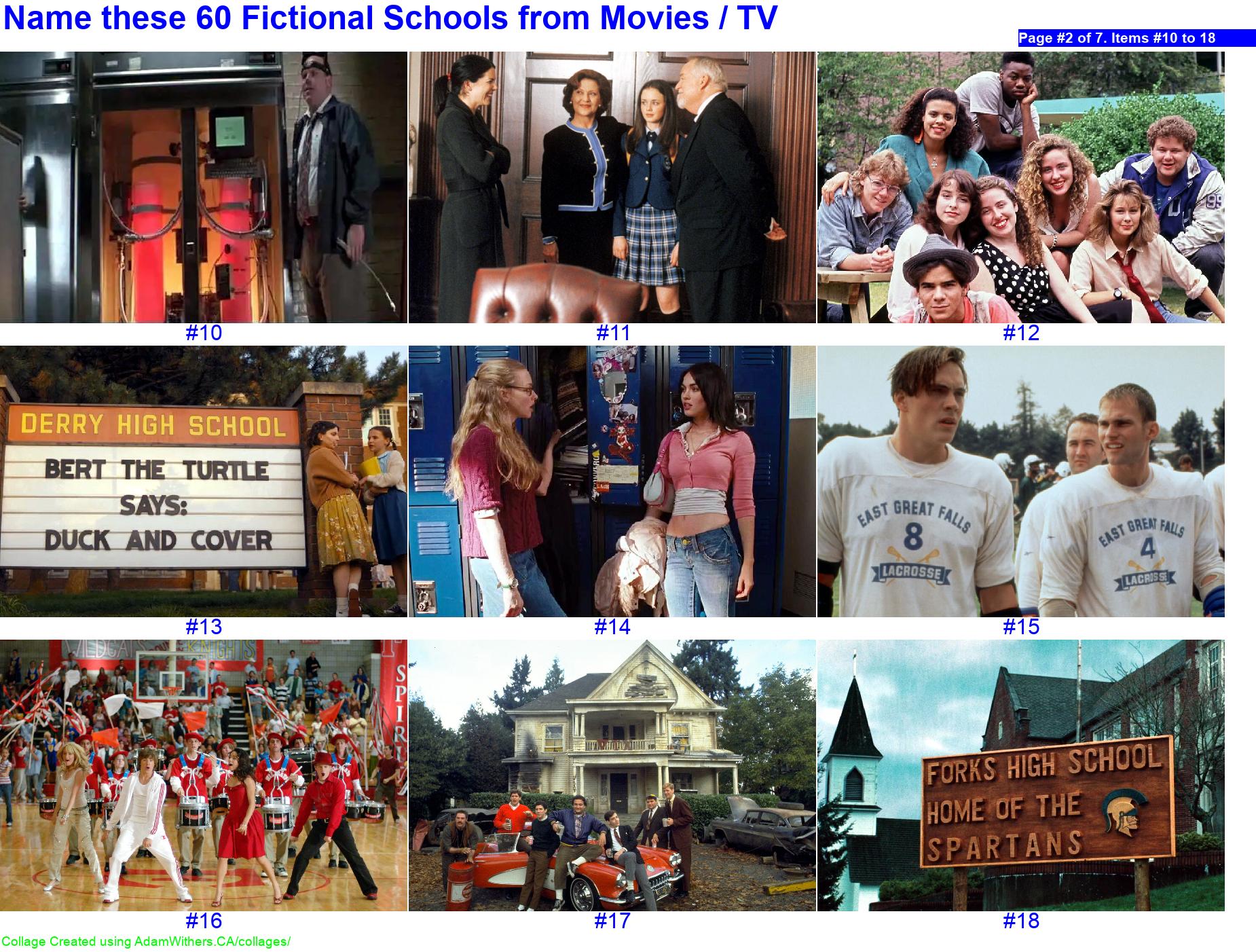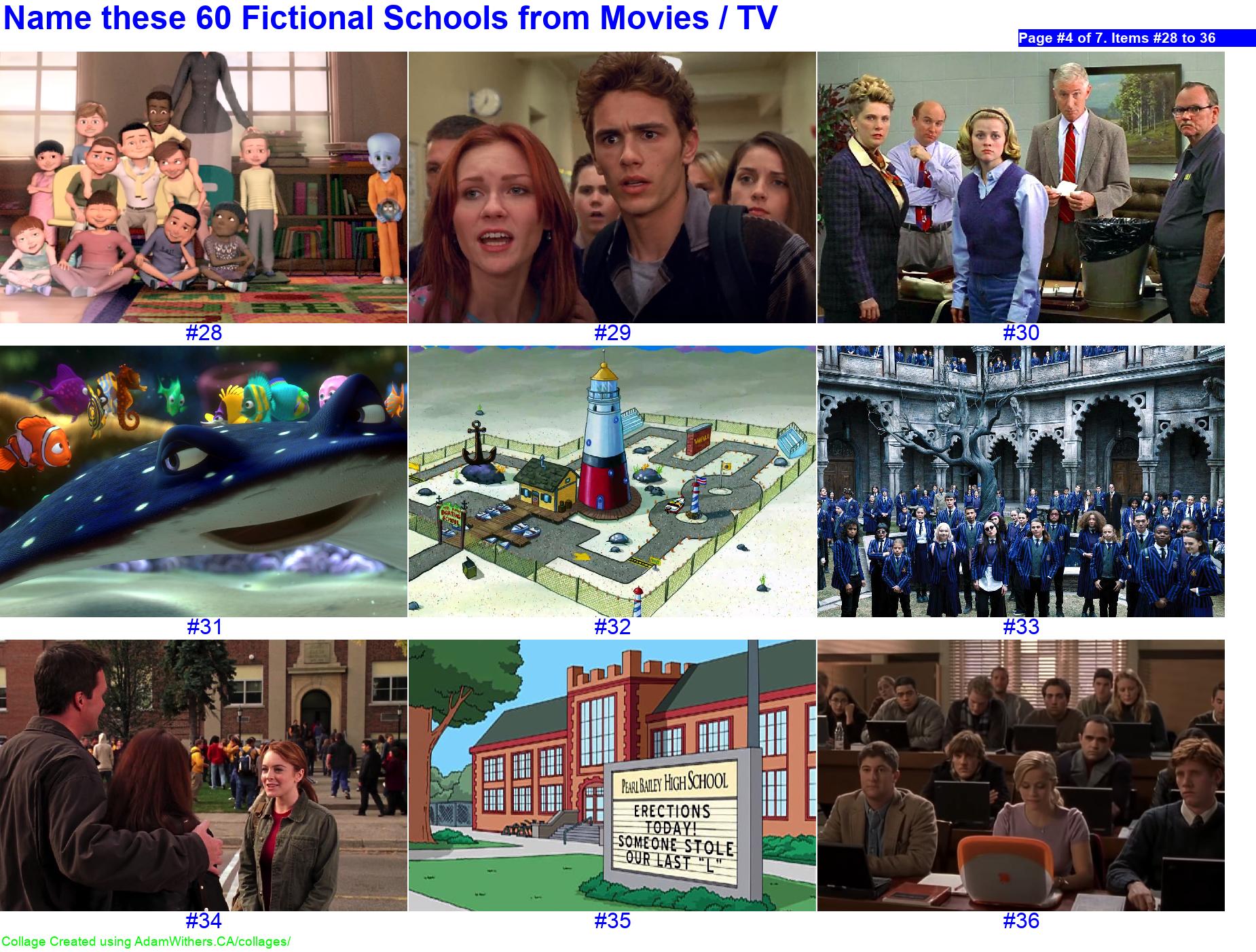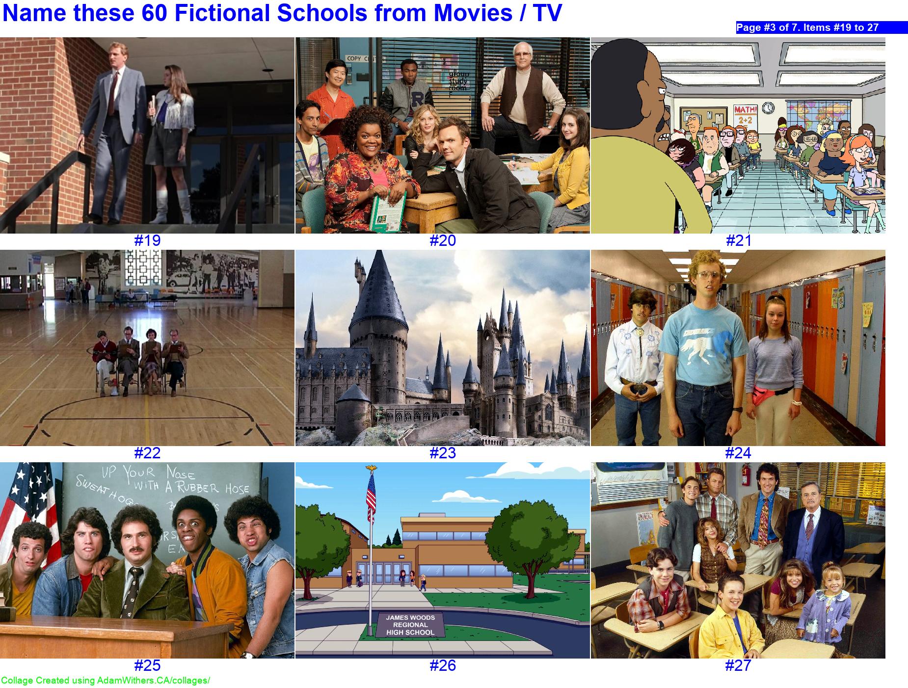 - Name these 60 Fictional Schools from Movies / TV